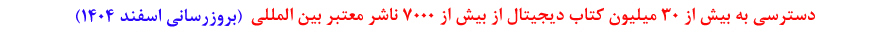 تهیه کتاب های الکترونیکی موجود در آمازون و سایر سایت های فروشگاهی در تمامی موضوعات دانشگاهی با هزینه 8000 تومان - پزشکی، حقوق، مهندسی، علوم پایه وکشاورزی، حسابداری، مدیریت و تمامی رشته های دانشگاهی ...... کتابخانه دیجیتال نوین با آدرس فوق افتخار دارد که امکان دانلود آنلاین و روزآمد از بیش از 250 پایگاه بسیار معتبرعلمی جهان همچون نیچر، ساینس دایرکت، اسپرینگر، آکسفورد، وایلی ، کمبریج و ... را برای شما دانشگاهیان و پژوهشگران گرامی فراهم نموده است: جهت دسترسی و دانلود مقالات بصورت آنلاین و آنی می توانید به لینک فوق مراجعه نموده و تنها ظرف چند ثانیه مقاله خود را بصورت خودكار و شبانه روزی دانلود نمایید . تعرفه ها: 1. تعرفه مقالات تعرفه دریافت هر مقاله و یا بخش کتاب معادل 100 تومان می باشد. 2. تعرفه پایان نامه ها تعرفه دریافت هر پایان نامه معادل 1000تومان می باشد. 3. تعرفه سفارش کتاب های دیجیتال تعرفه دریافت هر کتاب معادل 8000 تومان می باشد. ویژگی ها : · امکان جستجوی یکپارچه با استفاده از موتور جستجوی جامع و پر سرعت نوین لیب در تمام پایگاه ها · امکان دسترسی به جدیدترین مقالات ISI از بیش از 250 پایگاه بسیار معتبر علمی · امکان دسترسی به بیش از 3 میلیون پایان نامه های دیجیتال در تمام موضوعات علمی · امکان دسترسی به بیش از 6 میلیون عنوان کتب دیجیتال در تمام موضوعات علمی دسترسی به بسیاری از فصول کتاب های بیش از 200 پایگاه